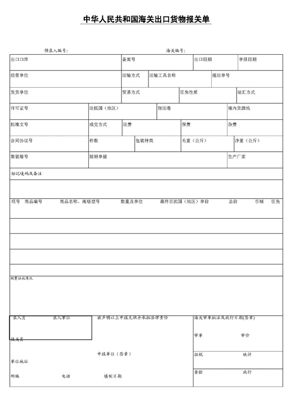 報關單 Customs Declaration